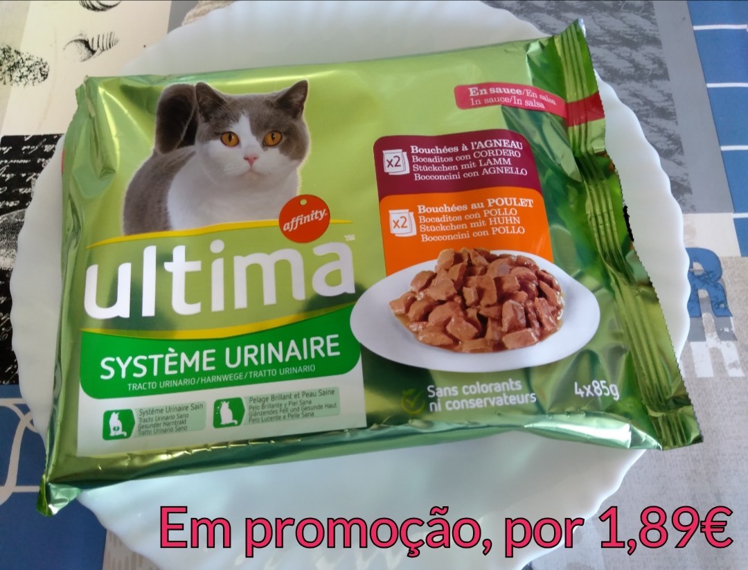 É a primeira vez que vejo este artigo à venda no supermercado, e melhor ainda, está em promoção, no continente. Comida húmida de trato urinário, é bom para o Rafael, já que ele já teve um problema do género.